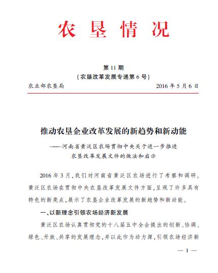農(nóng)墾情況第11期(農(nóng)墾改革發(fā)展專遞第6號(hào))