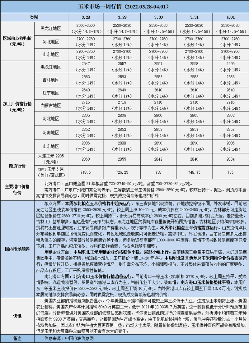天然橡膠、大豆、玉米市場一周行情(2022.03.28-04.01)