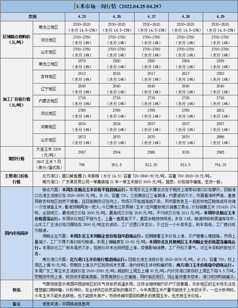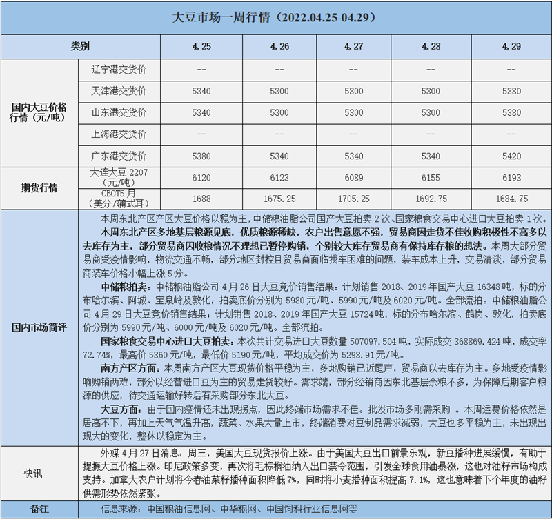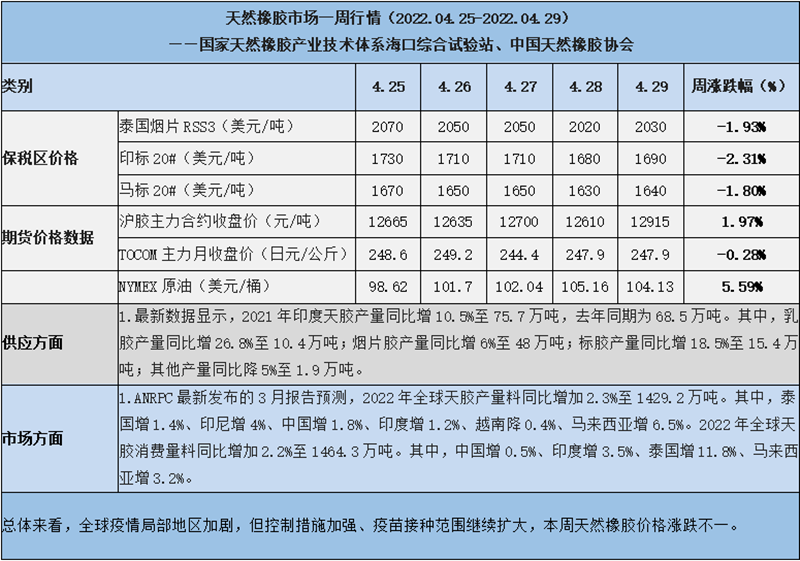 天然橡膠、大豆、玉米市場(chǎng)一周行情(2022.04.25-04.29)