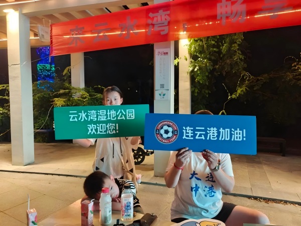 8月3日晚,云臺農(nóng)場云荷廣場的戶外大屏前熱鬧非凡,連云港對戰(zhàn)泰州的直播讓這里變成了球迷的聚集地。沒有花哨的裝飾,卻擋不住大家對足球的熱情。