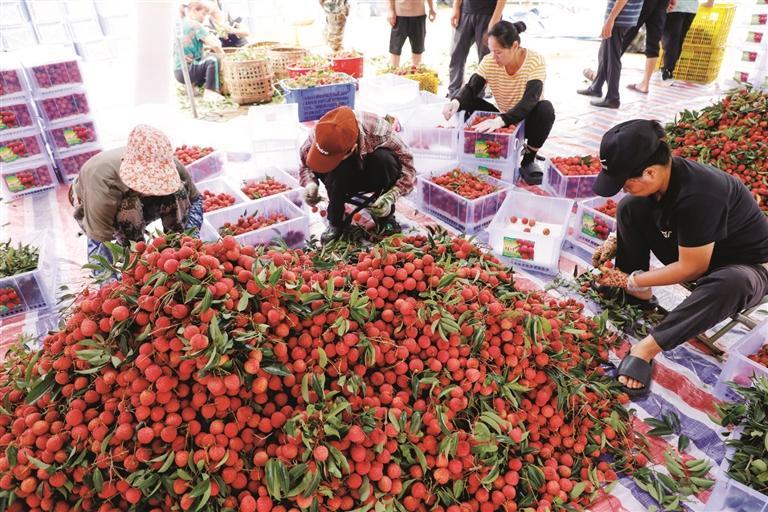近日,柳城縣東泉鎮(zhèn)大樟村劉家屯荔枝喜獲豐收。前來收購荔枝的柳州市區(qū)商人莫茂豐介紹,當?shù)毓灿?0戶果農(nóng)供貨,自己第一天就采購了7噸荔枝,通過分揀后發(fā)往北京、鄭州、西安、紹興等地。