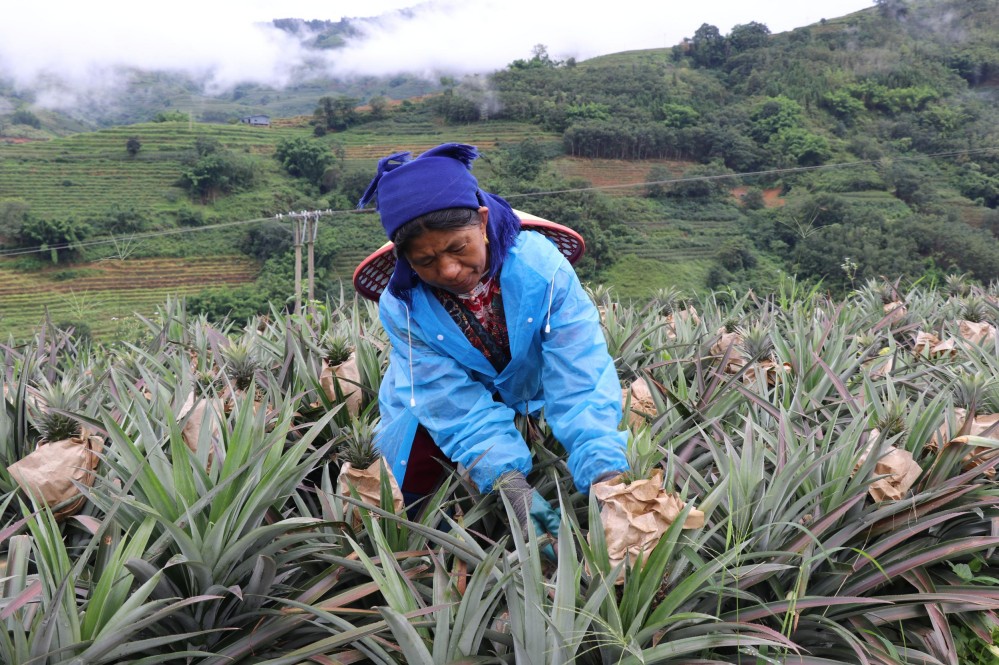 黃草嶺鄉(xiāng)自然條件得天獨(dú)厚,適宜金鉆鳳梨生長(zhǎng),產(chǎn)出的金鉆鳳梨品質(zhì)佳、賣相好,遠(yuǎn)銷省外市場(chǎng)。近年來,當(dāng)?shù)爻浞至⒆悛?dú)特地理環(huán)境和資源稟賦,因地制宜整合資源,不斷發(fā)展壯大農(nóng)業(yè)產(chǎn)業(yè)。通過探索推廣“土地流轉(zhuǎn)、入股分紅、產(chǎn)業(yè)發(fā)展、就業(yè)務(wù)工”增收模式,讓脫貧戶通過“租金、股金、現(xiàn)金、薪金、獎(jiǎng)金”相結(jié)合的“五金”模式增收致富,推動(dòng)黨建引領(lǐng)聯(lián)農(nóng)惠農(nóng),有效實(shí)現(xiàn)產(chǎn)業(yè)富民,為鄉(xiāng)村振興提供堅(jiān)實(shí)的產(chǎn)業(yè)支撐。