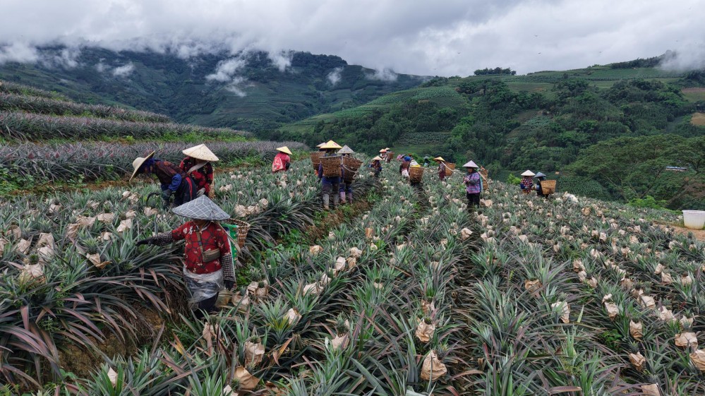 時(shí)下,紅河哈尼族彝族自治州元陽縣黃草嶺鄉(xiāng)種植的金鉆鳳梨迎來豐收季。金燦燦的金鉆鳳梨掛滿山坡,工人們穿梭其間,搶抓時(shí)節(jié)采摘、搬運(yùn)、分揀,一幅豐收畫卷徐徐鋪展。