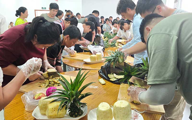 節(jié)慶期間,系列活動(dòng)精彩紛呈,傳統(tǒng)與現(xiàn)代交匯,勞作與歡樂并存。田間地頭,采摘大賽緊張激烈,農(nóng)戶巧手采摘,金黃菠蘿頃刻滿筐;籃球場(chǎng)上,“拳王爭(zhēng)霸”吶喊不斷……午后,削菠蘿比賽盡顯精湛技藝,陀螺賽場(chǎng)旋轉(zhuǎn)不息;抓魚活動(dòng)趣味橫生,人歡魚躍、水花四濺,盡顯生態(tài)和諧之美。