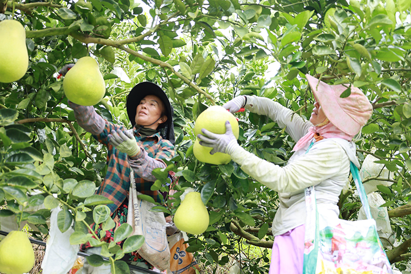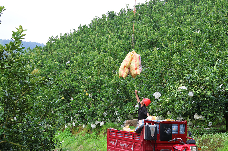 村民正在采摘柚子。勐??h融媒體中心供圖