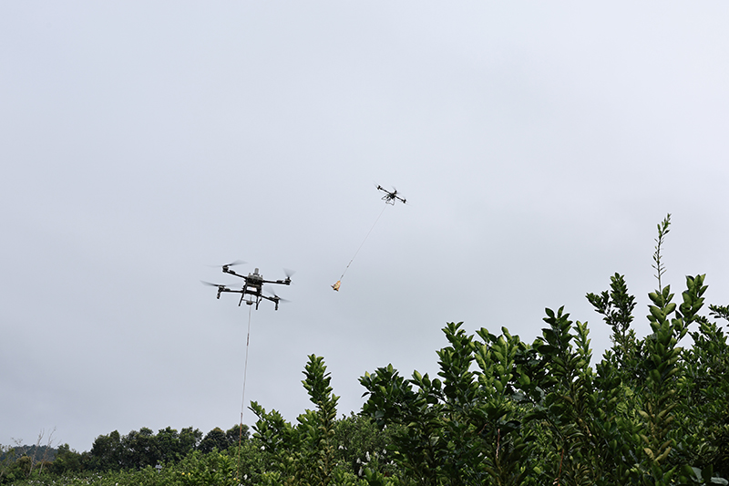 兩架無(wú)人機(jī)同時(shí)吊運(yùn)。勐海縣融媒體中心供圖