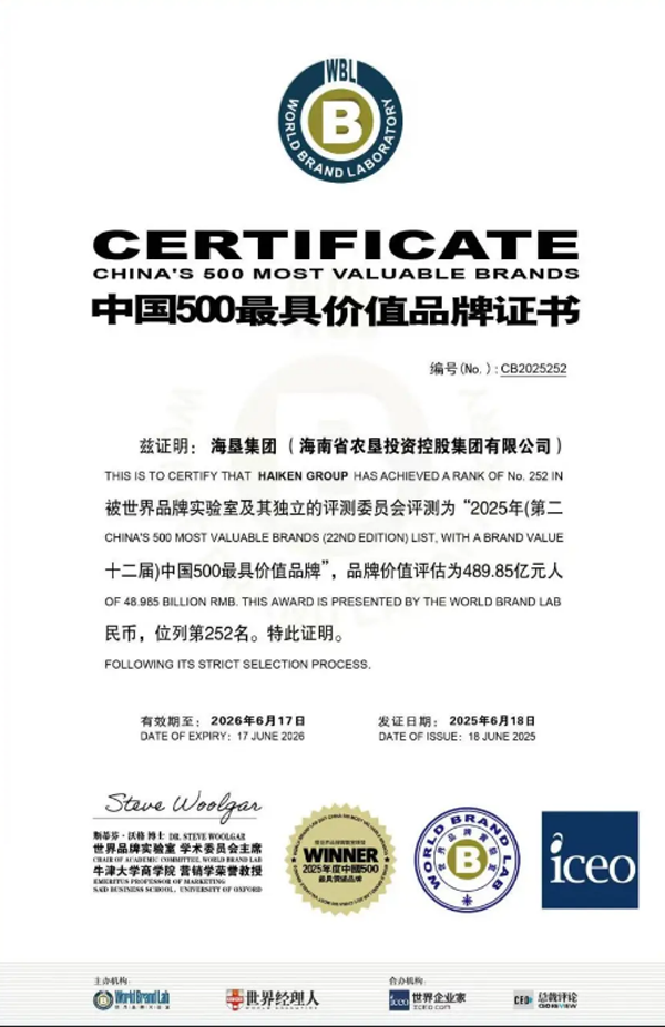 品牌建設(shè),無(wú)疑是撬動(dòng)產(chǎn)品價(jià)值倍增的有力杠桿。作為海南最大的國(guó)有企業(yè)和農(nóng)業(yè)龍頭企業(yè),近年來(lái),海墾集團(tuán)加快實(shí)施“品牌強(qiáng)墾”戰(zhàn)略,結(jié)合“一場(chǎng)一品”工作,積極打造并拓展“HSF海墾集團(tuán)”主品牌和子企業(yè)品牌矩陣,并在品牌創(chuàng)新、品牌管理、品牌營(yíng)銷等方面持續(xù)發(fā)力,讓“墾字號(hào)”的品牌價(jià)值不斷彰顯,品牌效益顯著提升。今年6月,海墾集團(tuán)登榜中國(guó)500最具價(jià)值品牌,位列第252名,品牌價(jià)值達(dá)489.85億元。