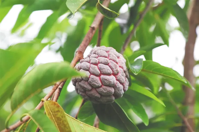 盛夏時(shí)節(jié),溫?zé)岬年柟庀?,一顆顆紫色釋迦掛滿枝頭,閃爍著玫瑰色的光亮,散發(fā)著玫瑰的香味。這是三亞育才生態(tài)區(qū)那受村引進(jìn)的“新奇特優(yōu)”水果之一,因其獨(dú)特的口感和市場(chǎng)的稀有,受到廣大消費(fèi)者的青睞。