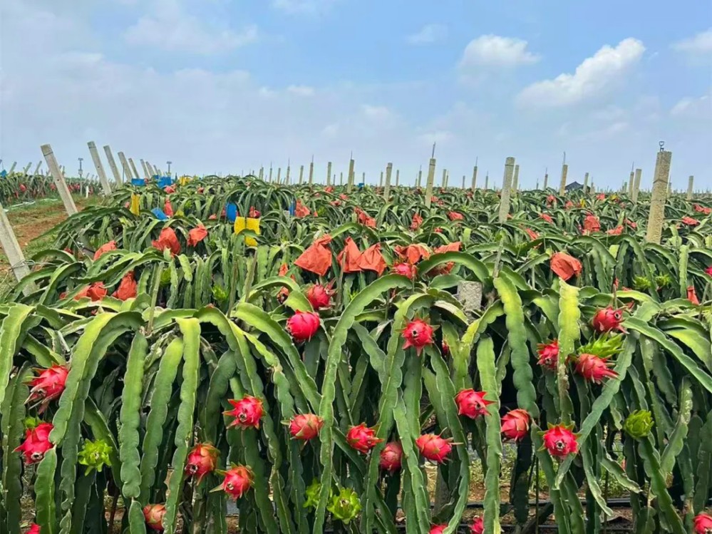 在金光農(nóng)場(chǎng)公司的果園里,“金光一號(hào)”無(wú)刺紅心火龍果正迎來(lái)豐收季,6月份上市至今,累計(jì)產(chǎn)量223萬(wàn)斤,產(chǎn)量相比去年同期增長(zhǎng)60%,銷(xiāo)售收入同比增長(zhǎng)近10%,產(chǎn)銷(xiāo)兩旺的背后離不開(kāi)科技賦能的強(qiáng)勁支撐。