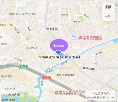 云南商業(yè)飯店(大觀國際),云南省昆明市西山區(qū)大觀路232號(hào),前臺(tái)電話0871-63336888