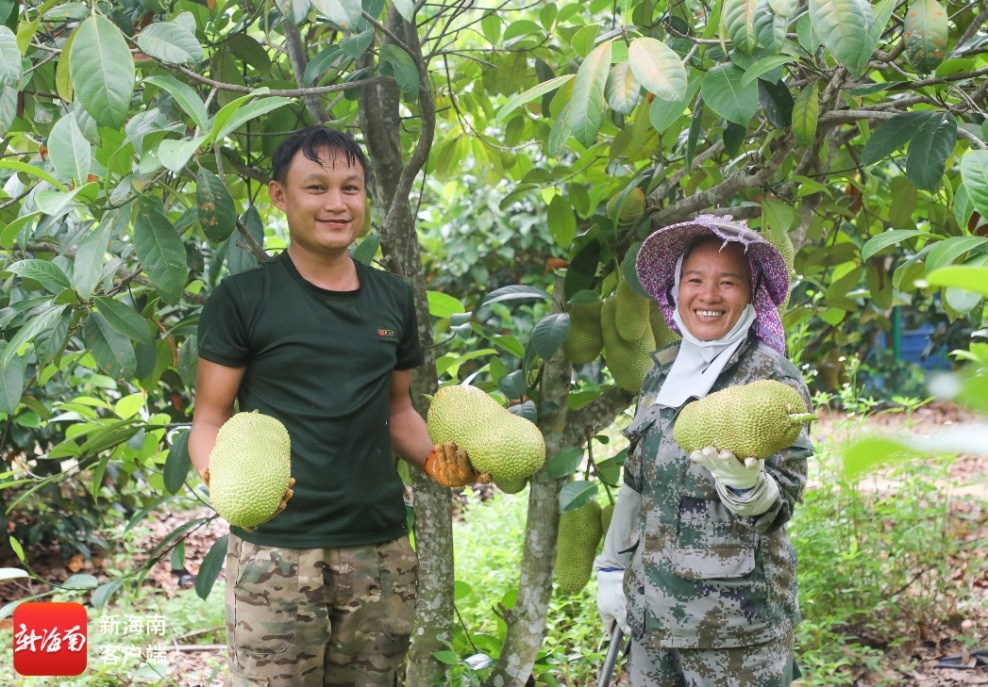 村民在果園里采摘榴蓮蜜。五指山市融媒體中心提供