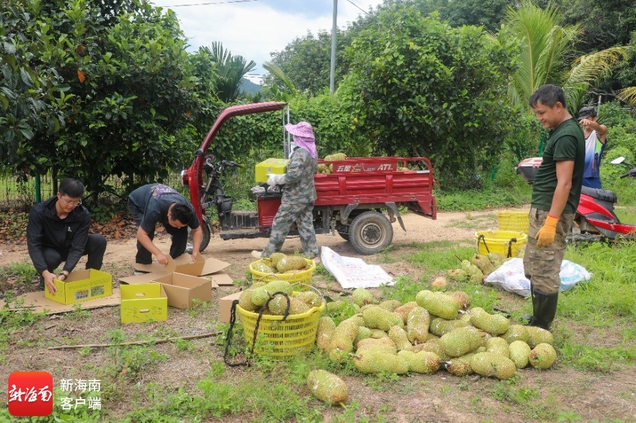 村民在裝箱榴蓮蜜。五指山市融媒體中心提供
