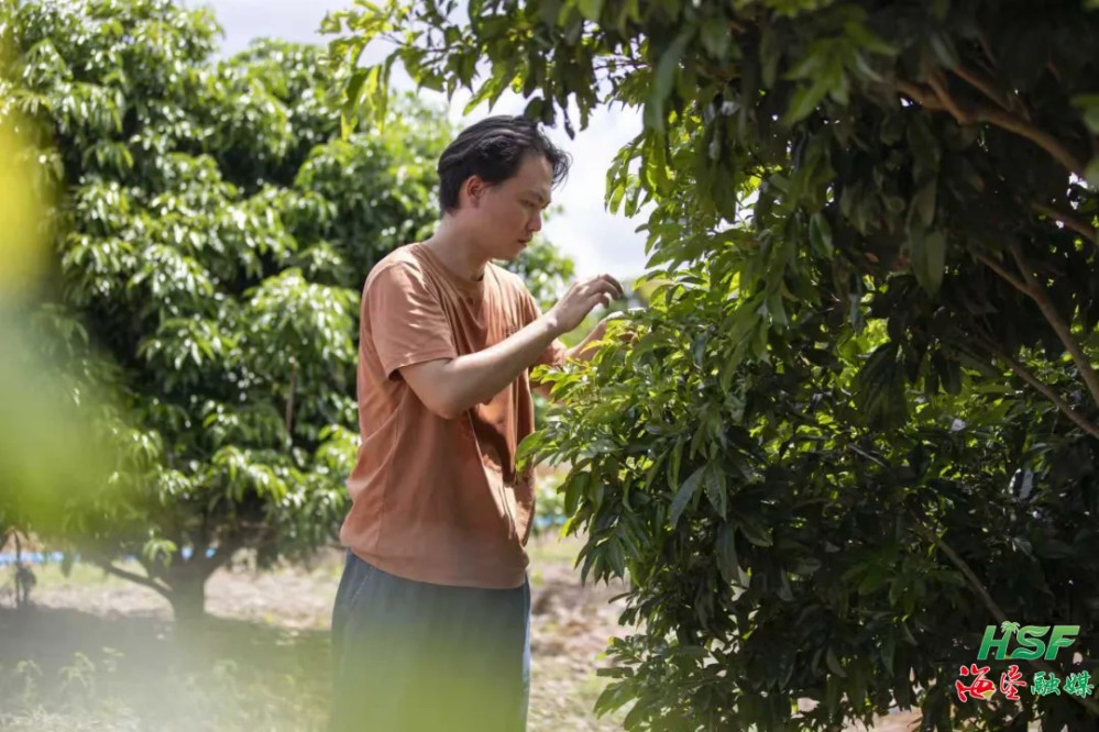 紅明農(nóng)場(chǎng)公司旗下海南荔海實(shí)業(yè)有限公司副總經(jīng)理李精華拿著手機(jī)和筆記本來(lái)到這里,一一觀察每株荔枝樹(shù),記錄它們的生長(zhǎng)情況。