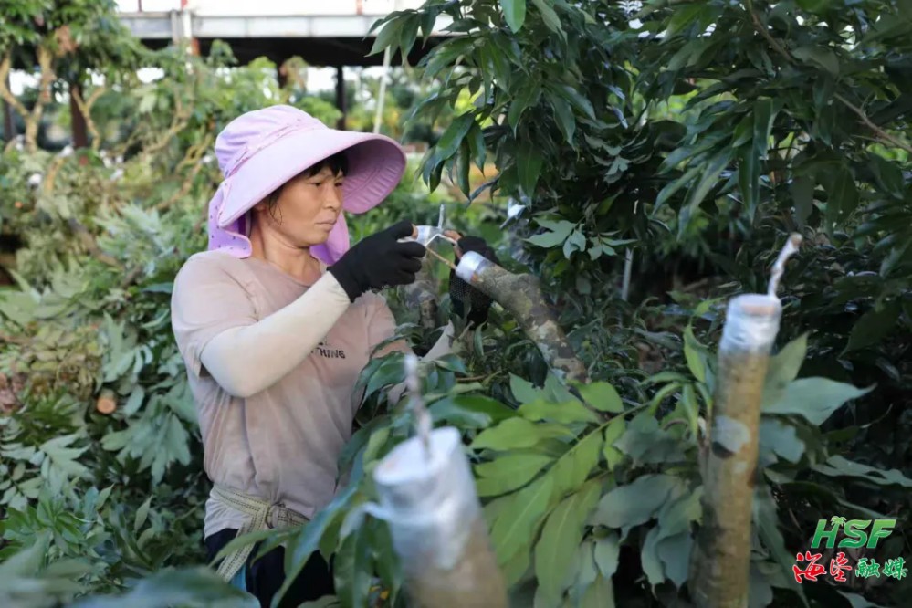 記者隨后來(lái)到紅明荔海共享農(nóng)莊的示范推廣基地,只見(jiàn)工人手拿刀具,熟練地進(jìn)行嫁接操作:選好樹(shù)枝、削皮修邊、挑皮接穗、纏縛嫁接膜,將“井岡紅糯”的芽條嫁接到“妃子笑”母樹(shù)上。目前,該基地已將“井岡紅糯”“新球蜜荔”“王紫荔”作為重點(diǎn)培育品種,共嫁接了183株。