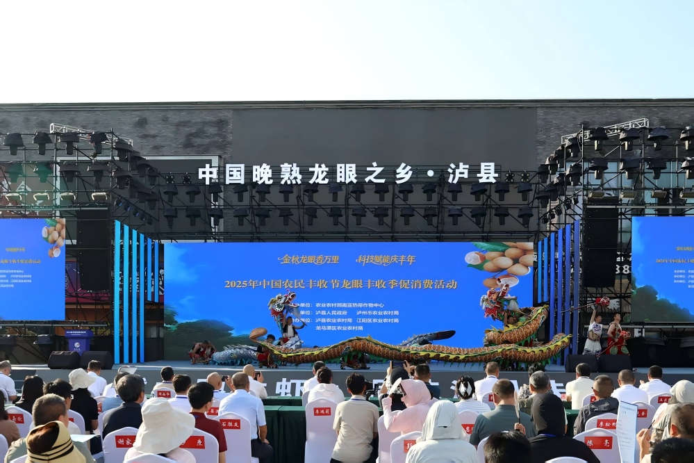 9月15日,由農(nóng)業(yè)農(nóng)村部南亞熱帶作物中心主辦,瀘縣人民政府、瀘州市農(nóng)業(yè)農(nóng)村局承辦的2025年中國農(nóng)民豐收節(jié)龍眼豐收季促消費活動在“中國晚熟龍眼之鄉(xiāng)”——四川瀘州市瀘縣成功舉辦。農(nóng)業(yè)農(nóng)村部農(nóng)墾局副局長、一級巡視員程景民,農(nóng)業(yè)農(nóng)村部南亞熱帶作物中心副主任黃輝,四川省農(nóng)業(yè)農(nóng)村廳二級巡視員周南華,瀘州市人民政府副市長葛洪亮,瀘州市人大常委會副主任、瀘縣縣委書記李仁軍等出席啟動儀式,龍眼種植大戶,龍眼科研專家學(xué)者,收購商、服務(wù)商及全產(chǎn)業(yè)鏈企業(yè)代表等200余人齊聚一堂,共慶龍眼喜獲豐收,共享龍眼甜蜜成果,共謀龍眼發(fā)展大計。同期還舉辦了全國龍眼產(chǎn)業(yè)學(xué)術(shù)研討活動及瀘縣第12屆龍眼龍蝦消費季活動。