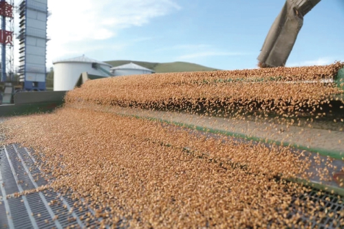 免渡河農(nóng)牧場(chǎng)收獲的小麥正在進(jìn)行篩選,等待烘干后入倉?!⊥踯帯z