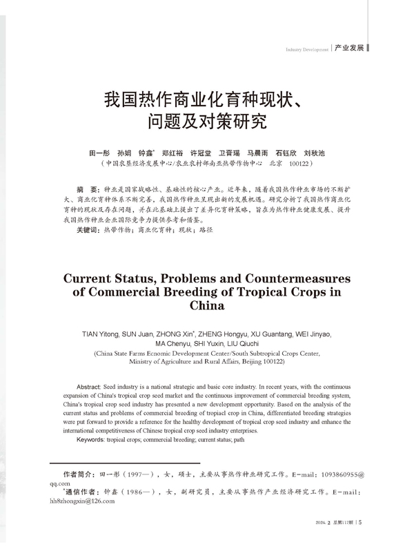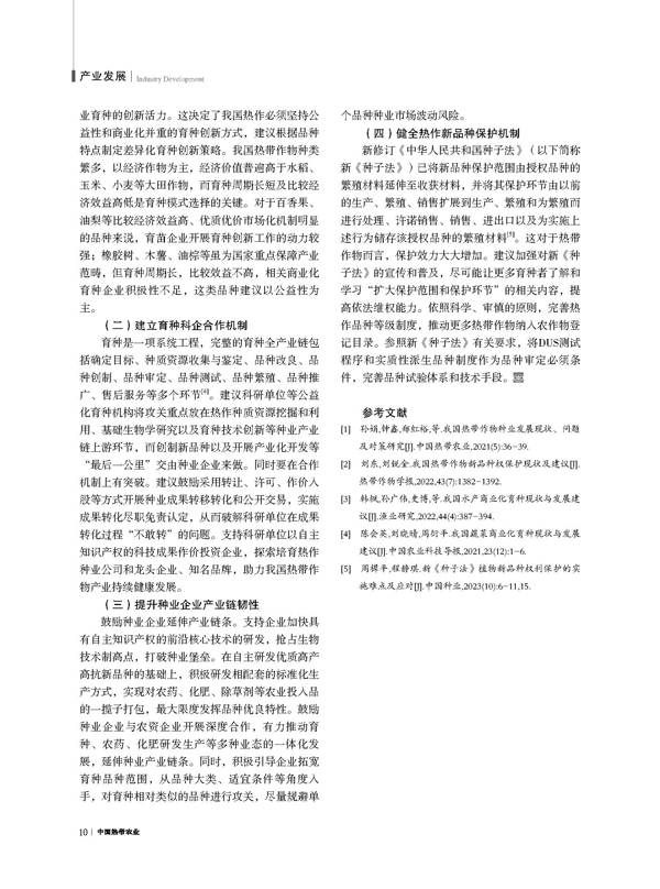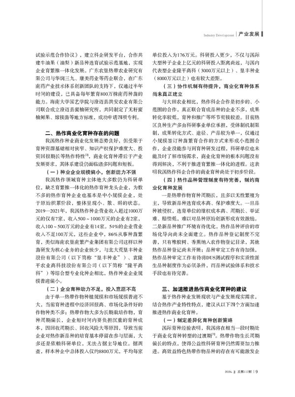我國(guó)熱作商業(yè)化育種現(xiàn)狀、問(wèn)題及對(duì)策研究